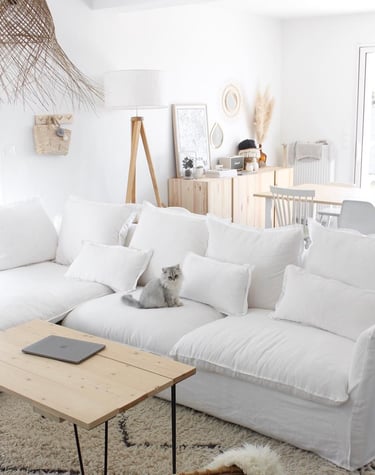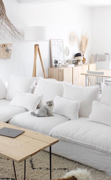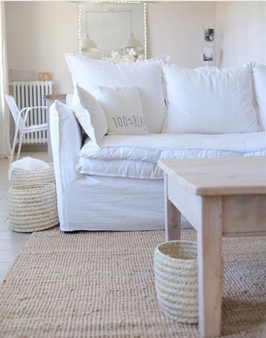 Dans le Sud-Ouest, nos intérieurs vivent au même rythme que l'océan : Le sable rentre avec les pieds nus, le sel s'infiltre dans les fibres, l'humidité marque les textiles, les chiens font partie de la famille, et les canapés servent autant aux apéros qu'au retour de plage. Résultat: les tissus s'encrassent vite, même quand tout paraît "propre".